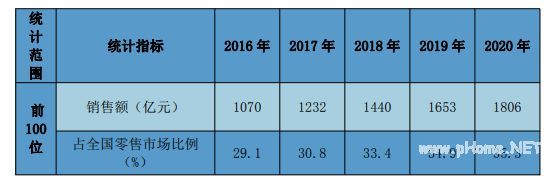 2016年至2020年,药品零售企业销售额前100位所占的市场份额越来越高,2020年35.3%的市场占比相较于2016年提升了6.2个百分点。可以明显看出,行业的集中度一直在上升。