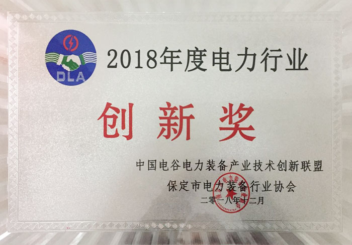 感谢“保定市电力装备行业协会”、“中国电谷电力装备产业技术创新联盟”授予“保定市多多28设备制造有限公司”2018年度电力行业创新奖!