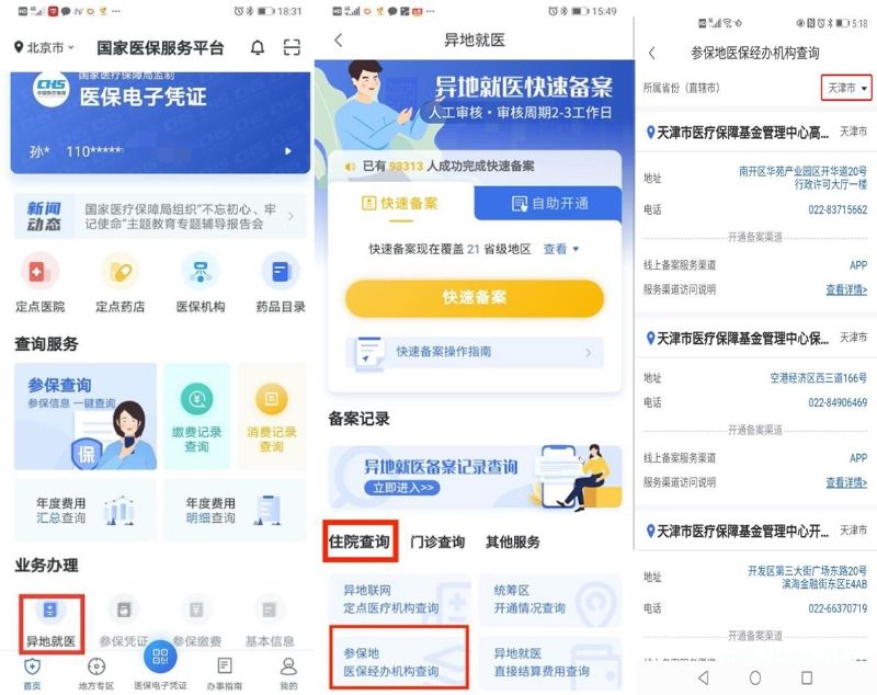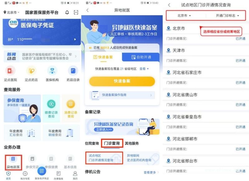 问题一:如何查询参保地是否开通?