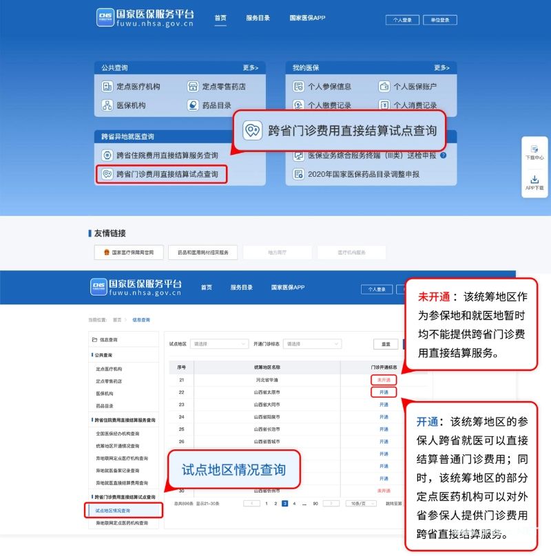 2月1日起,27个普通门诊费用跨省直接结算试点省份实现互联互通,启动试运行。国家医保局同步推出国家医保服务平台APP异地就医专区,国家医保服务平台网站(https://fuwu.nhsa.gov.cn)跨省异地就医查询专区,方便参保人查询、办理门诊费用跨省直接结算相关业务。